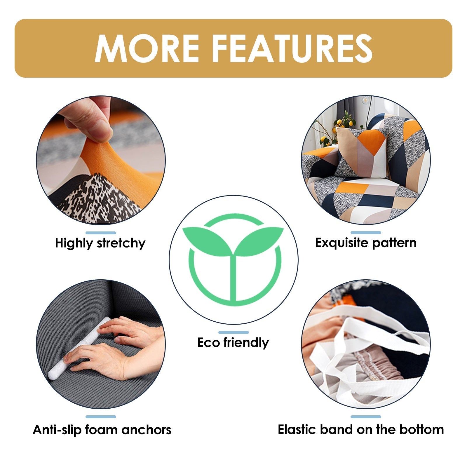 Made from polyester with 5% spandex for elasticity, the sofa cover fits standard 3 seat sofas with arms, having arm to arm running length range of 220-245cm (Please refer sizing image for clarity).