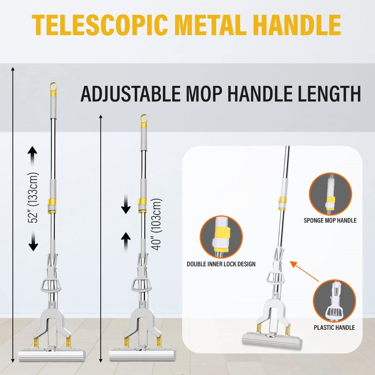 - DUAL FUNCTION - The sponge mop can easily drag the dirt off your home, and the nylon brush head on the front of the mop can scrape stubborn stains.